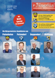 Druckservice Mehr zu uns Sie erreichen uns unter:druckerei at druckservice-weiss.de s´Bürgerbladl mit den Mitteilung von derVG Pielenhofen/Wolfseggundmit den amtlichen Mitteilungen derGemeinde Pettendorf Mehr dazu Werbeartikel-Shop Textilien-Shop ´Bürgerbladl Monatliche Erscheinungsweise Sie erreichen uns unter:buergerbladl (at) druckservice-weiss.de Redaktionsschluss Ausgabe Februar 20.3. um 18 Uhr Mehr dazu